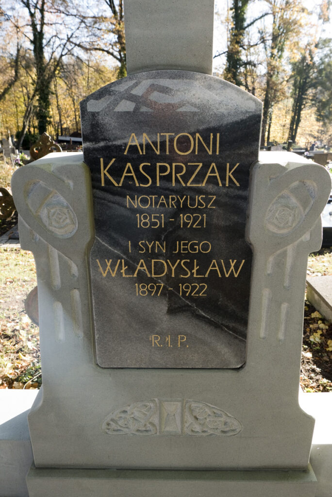 Antoniego Kasprzaka (1851-1921) – cieszyńskiego notariusza, w jego wilii na ulicy Michejdy znajduje się obecnie przedszkole. Grobowiec o architekturze niespotykanej na Cmentarzu Komunalnym (sektor XXIV/rząd 1/numer 22)