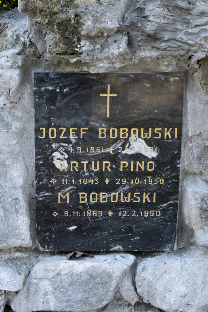 Odrestaurowany nagrobek jest dziełem cieszyńskiego kamieniarza, pana Andrzeja Pindura. Zabytkowa, ponad stuletnia część mogiły, stanowiąca świadectwo pamięci rodziny, zachowana została w niezmienionej formie wraz z tablicą upamiętniającą troje pochowanych: Artura Pino oraz Józefa i Małgorzatę Bobowskich. Nowa część grobu to betonowe obramowanie wypełnione białym żwirem i obsadzone wrzosami. Centralnym elementem kompozycji jest okazała tablica pamiątkowa wykonana z klasycznego, polerowanego marmuru Bianco Carrara.